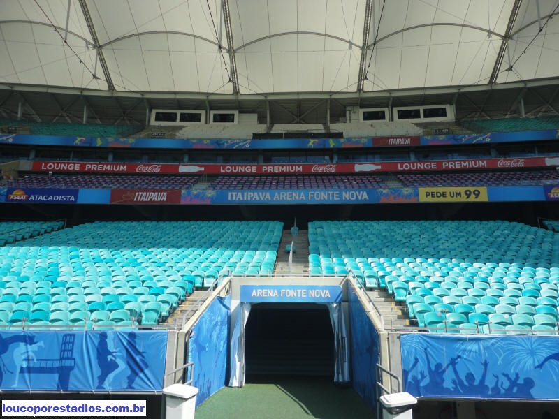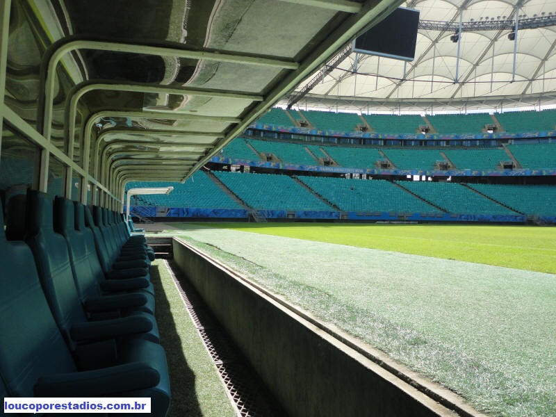 túnel de acesso ao gramado, os bancos de reservas e o mirante,